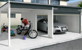- カーポート連結、側面シャッターで自由に使える開放感ある空間が生まれます。