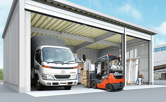 - ●安心の頑丈設計●大開口&余裕の高さ。一般型2連棟の前柱中はスライド式で、最大開口間口5510㎜を確保できます。内高は2810㎜と3110㎜の2種類からお選びいただけます。●屋根は結露防止材が全機種標準装備